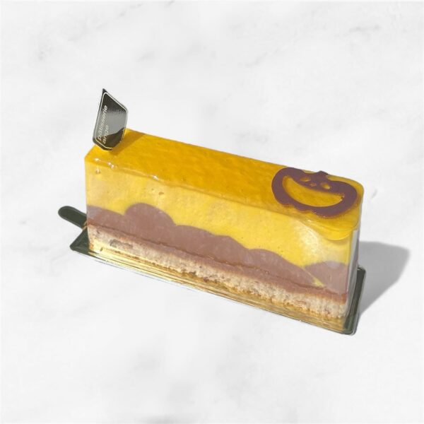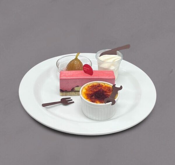 ウォータージェットカッターでカットした美しい断面のケーキ、飾りのチョコレートもウォータージェットカッターでカットしました。