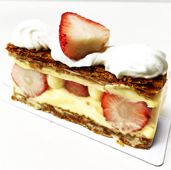 カスタードクリーム仕込み量を間違えてしまい、、、「苺ミルフィーユ」と「苺エクレア」は、本日並びません。