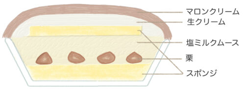 マロンクリームと塩ミルクのムースを組み合わせた、やさしい味わいのモンブランです。