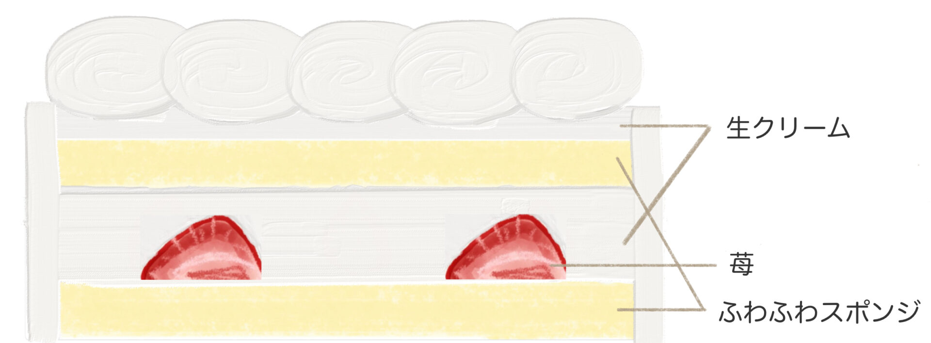 ふわふわのスポンジに、甘さ控えめで口どけの良い生クリーム。
